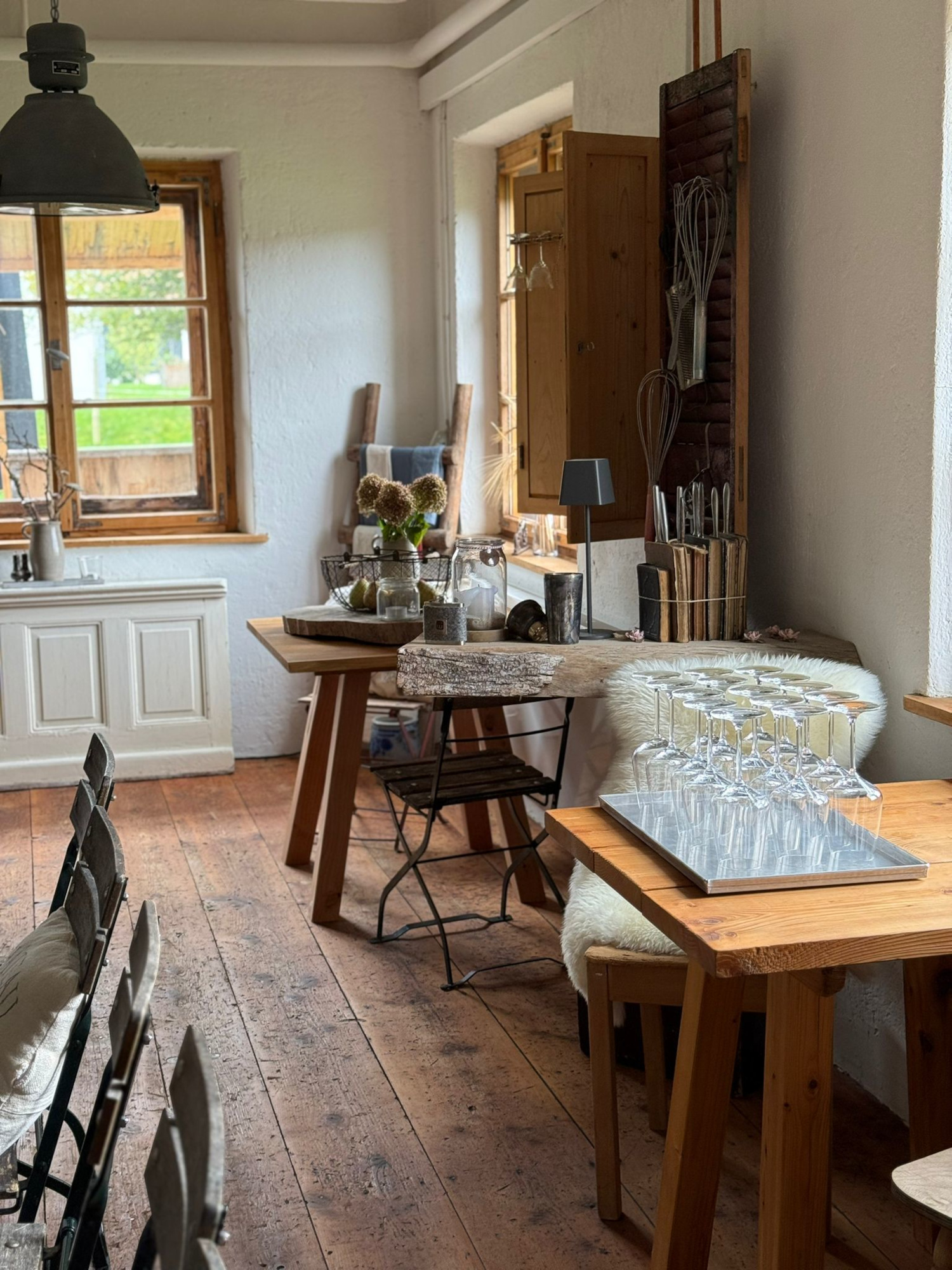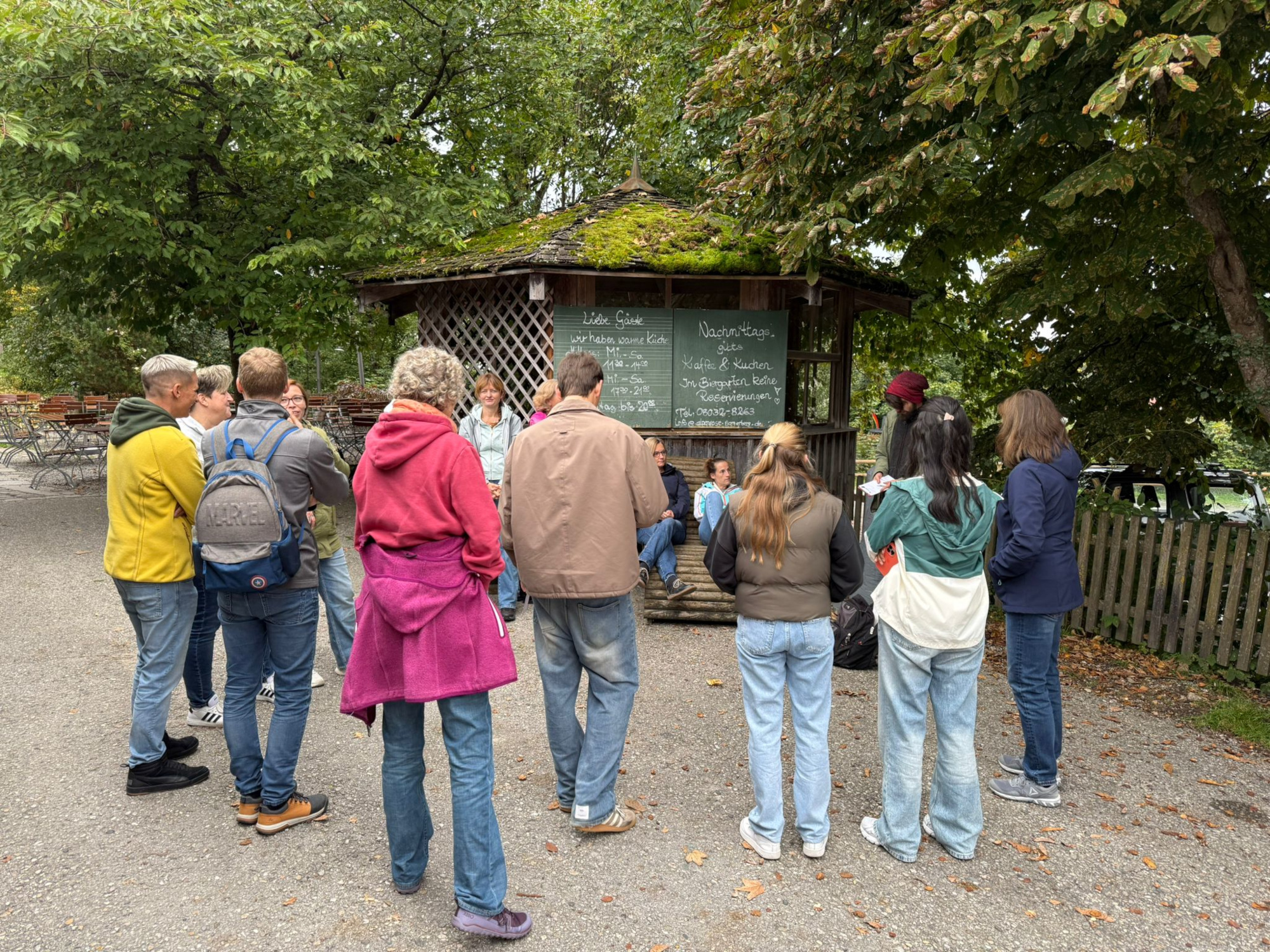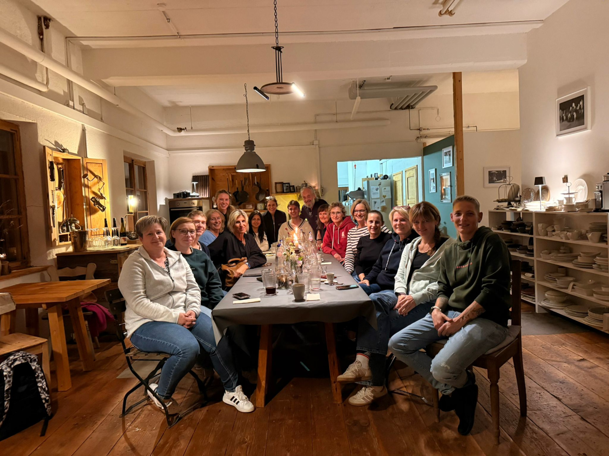Sie - liebe Patienten - haben uns mit einer vollen Kaffeekasse diesen wunderschönen und kurzweiligen Ausflug ermöglicht. Nach einem Geocaching-Wettbewerb in Grainbach/Samerberg verwöhnte uns Véronique Witzigmann in ihrer „Schreinerei“ mit delikaten Köstlichkeiten.